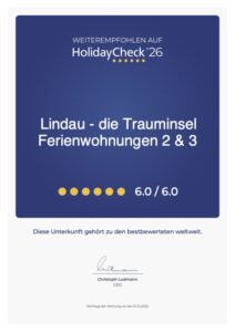 Booking.com hat Lindau die Trauminsel Nr. 2 mit dem Traveller Review Awards 2024 mit 9,2von max. 10 Sternen ausgezeichnet.